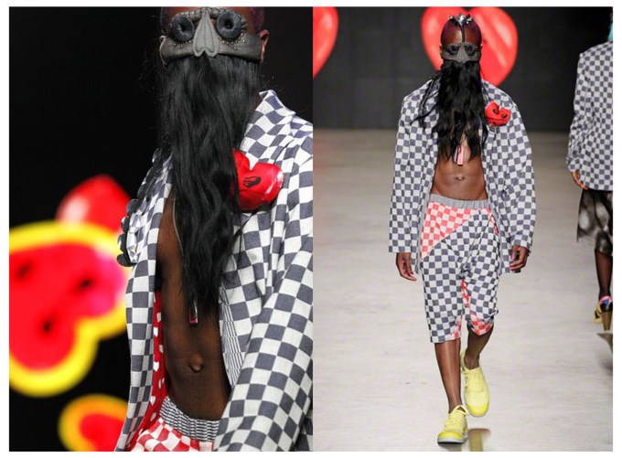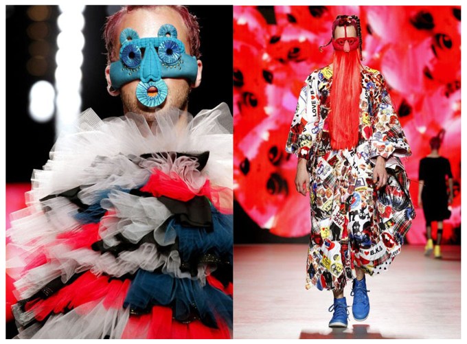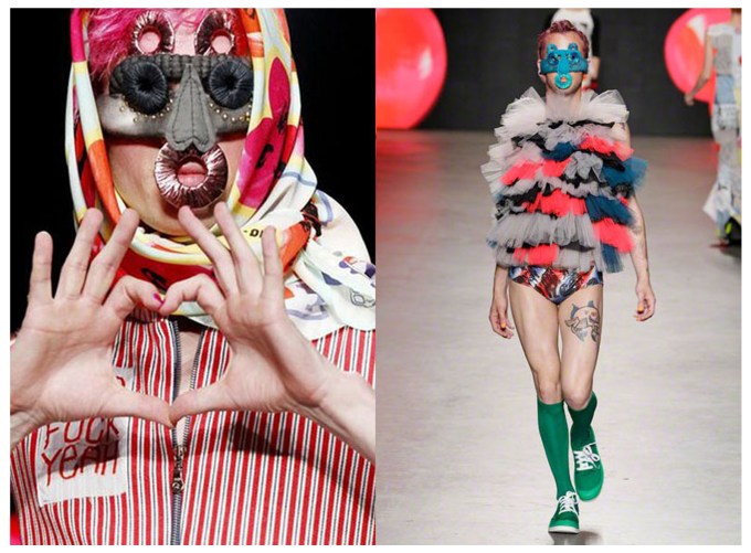 A collection of textile masks for Bas Kosters’ Love, Fuck Yeah SS13 Runway Collection showed during Amsterdam Fashion week | Textile, synthetic hair, sequins, rope