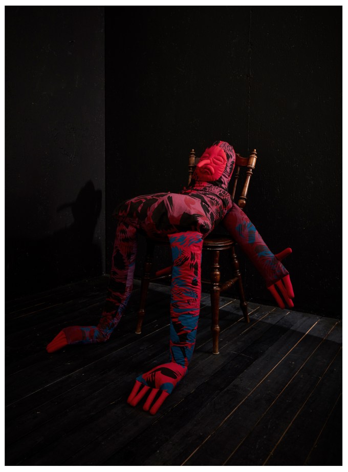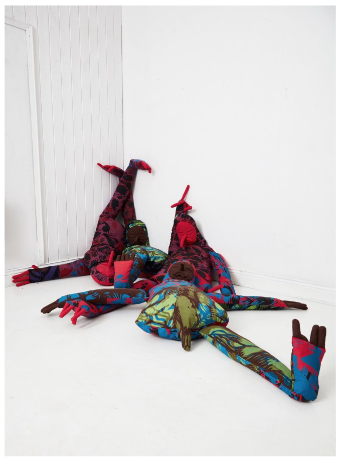 Textile Installation | Practical Research on the subject of ‘Otherness’ | A collection of hand screen printed textile figures | Pigment dye, cotton, thread, hay | Dimensions: 180x85x30 cm | ongoing project